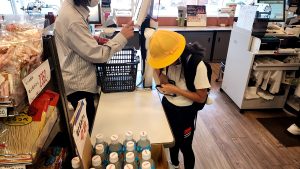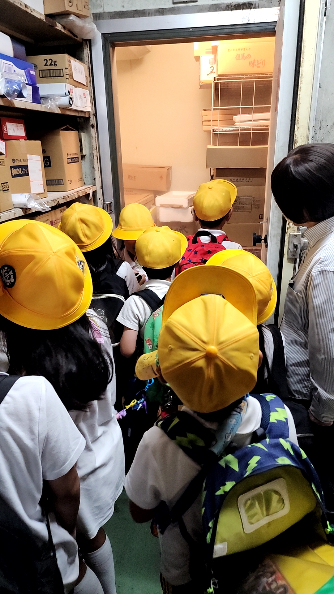スーパーマーケットでは、バックヤードの見学や仕事への質問を行いました。