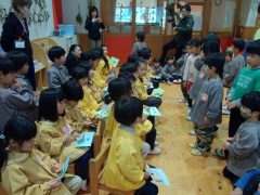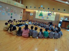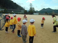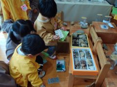 17日(水)はバスに乗ってたきこども園まで行き、交流をしました。今回で2回目の交流会でした。1回目の交流をよく覚えており、「一緒に川遊びしたね!」「たきこども園ってどんなところだろう…」と話しながら向かいました。たきこども園に着くと、まずはみんなで触れ合い遊びをし、みんなで体をたくさん動かし緊張も解けて笑顔が溢れていました。そしてその後は、たきこども園5歳児ばら組さんの石研究所博物館に招待してもらい、たくさんの石を見せてもらったり、楽しいスタンプラリーをさせてもらったりしました。そしてお土産に一人一つの素敵な石をプレゼントしてもらい、大喜びでした。園庭では、一緒にブランコをしたり、鬼ごっこや大縄跳びをしたり…時間たっぷり遊びました☆