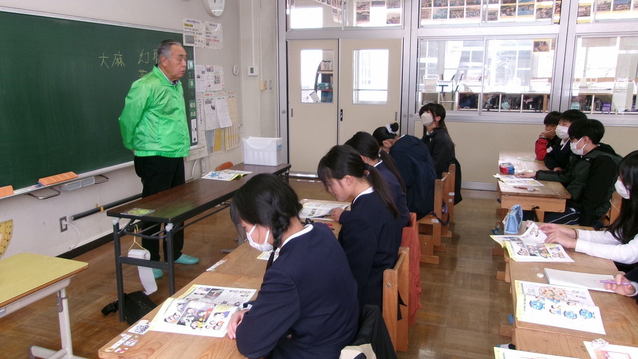 城東地域をめぐる”ふるさと探訪”。地域の自治会の方々に来ていただき、自分たちの住む城東地域の歴史について学習しました。