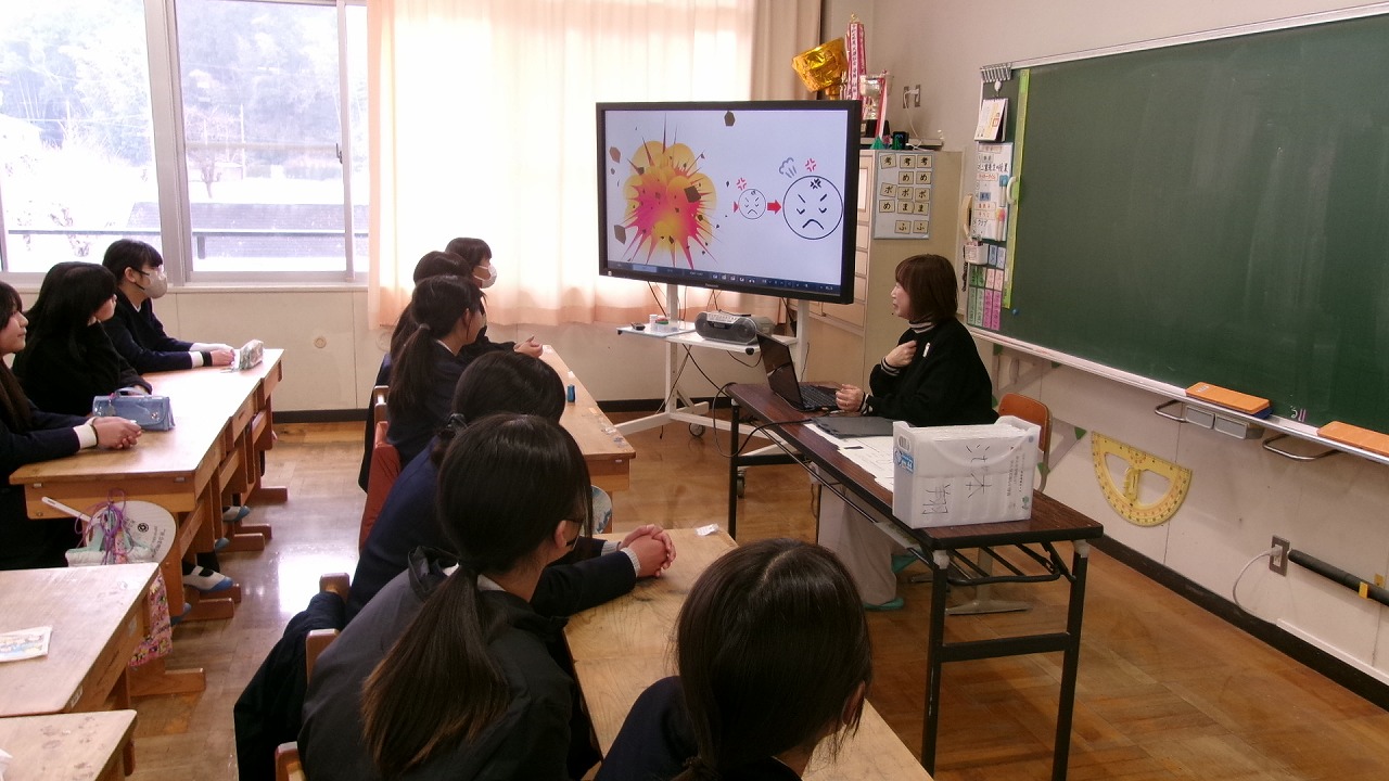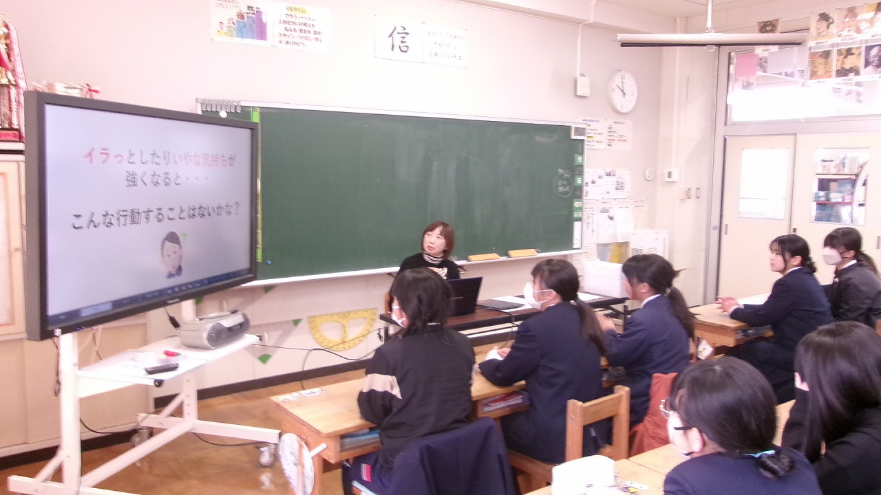 この日は、中学校のスクールカウンセラーの先生に来ていただき、授業を受けました。
