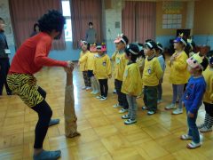 2月3日(火)は節分の日でした。2日(月)の朝の会で園長先生から“節分”についてのお話を聞きました。“節分”とはなにか…、どんな鬼がいるのか…、自分の心の中にいる鬼を退退治すること…等、大事なことをたくさん教えてもらいました。