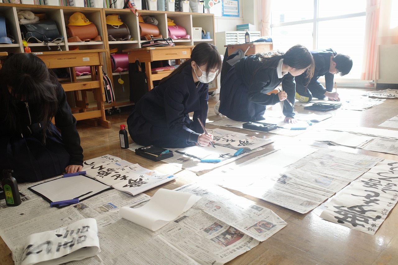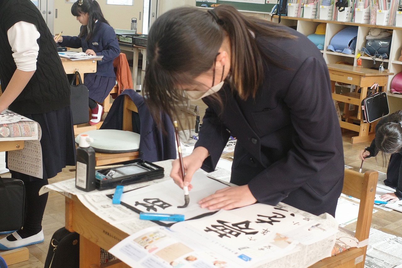 校内書き初め大会。挑戦する字は「夢を語ろう」!