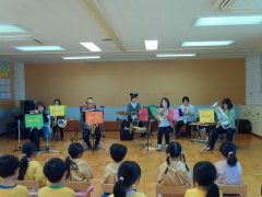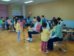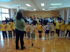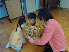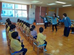 18日(水)は、丹波篠山市の音楽グループ“Oto_Toy(オトトイ)”さんに来ていただき、第2回目の音楽遊びを行いました。前回よりもたくさんのOto_Toy(オトトイ)メンバーさん、そしてたくさんの楽器に大喜びの子どもたちでした。今回も幼稚園で歌っている楽曲や子どもたちが大好きな楽曲、かやのみ幼稚園の園歌等、子どもたちのためにたくさん準備をしていただきました。子どもたちは生の演奏を聴きながら自然に口ずさんだり、「この曲知ってる!」と笑顔で話したりしていました。歌や体を動かすことが大好きな子どもたちは、大盛り上がりで楽しい時間を過ごすことがようです。また、楽器クイズをしたり、難しい楽器の名前もたくさん教えてもらったりしました。生の音楽に触れるというなかなかできない貴重な体験をさせていただくことができました。“Oto_Toy(オトトイ)”さんご多用の中、素敵な時間をありがとうございました。
