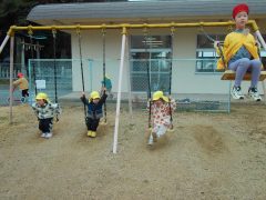 26日(木)は城東保育園3歳児きりん組との交流を楽しみました。今年度は計4回の交流となりました。4回目ともなると緊張はなくなった様子で、自然にきりん組さんの手を引いて優しく教えてあげたり、かかわりあって遊んだりする姿がたくさん見られました。