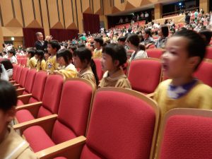 さくら組・すみれ組ともに初めての体験、そして大きな会場に少し緊張している姿もありましたが、うたまつりが始まると、歌が大好きなかやのみ幼稚園のみんなは大きな声で歌を歌ったり、体を揺らしながら口ずさんだりして楽しんでいました。「この歌知ってる!」「めっちゃ楽しい!」と、大喜びでした。帰りのバスの中や、幼稚園に帰ってからも「うたまつり楽しかったね」「お家の人にも教えてあげる!」と楽しかったことを友だちと話していました。生の音楽に触れたり、音楽を感じたりしながら楽しい時間を過ごし、子どもたちにとって記憶に残る素敵な日になったようです。