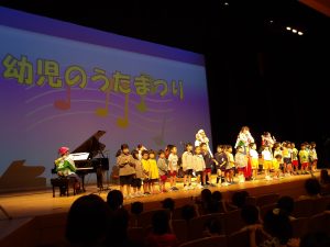 15日(水)は丹波篠山市立田園交響ホールまでバスで行き、“幼児のうたまつり”に参加してきました。“幼児のうたまつり”は、市内幼稚園・認定こども園の4、5歳児が田園交響ホールに集まり、生の音楽を聞いたり、一緒に歌を歌ったりします。