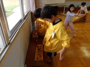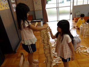木製玩具は来週20日(月)までお借りしますので、たくさん幼稚園で遊びたいと思います。