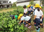 中庭に落ちた葉っぱは、風に舞う暇もなく、ごみ袋に入っていくのでした。