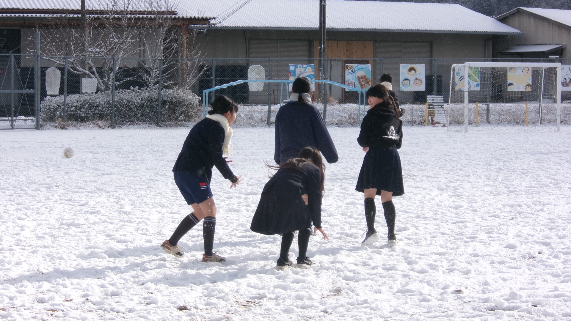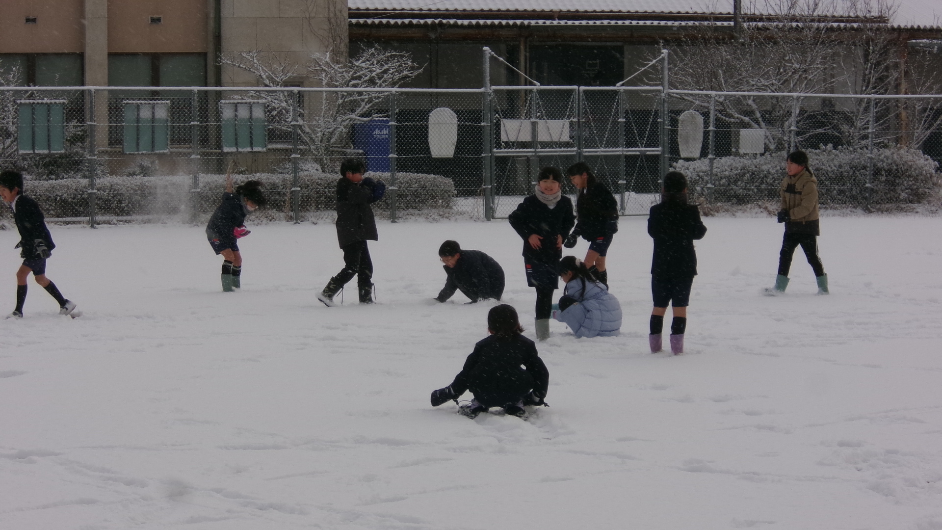 外はとても寒かったのですが、子ども達は大喜びで運動場に積もった雪で遊んでいました。みんなとっても元気です。