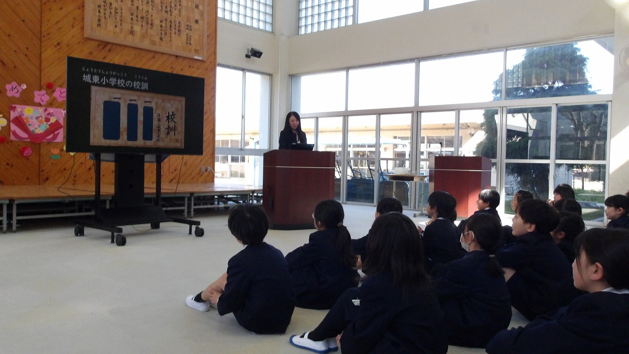 始業式では、校長先生からは校訓【輝く笑顔 やさしい心 元気なあいさつ】についてのお話や「ふるさと城東を大切に」「感謝の思いをもって人・もの・時間を大切に」「自分なりの夢や目標をもって努力しよう」とお話がありました。保護者の皆様、地域の皆様、今年度もよろしくお願いいたします。