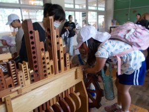 施設に到着すると、まずはみんなでワークショップ「木のキーホルダー作り」をしました。思い思いに絵を描いたり、形に切って貼ったりしながら素敵なキーホルダーが完成しました。そして、施設内ではビー玉転がしをしたり、たくさんの木でできた玩具で遊んだり、館内を思う存分見学したり、みんな夢中になって遊んでいました。そしてみんなでお弁当を食べ、時間たっぷり遊びました。「楽しかった!」「また来たいね!」と話している姿もありました。何より、大好きな保護者の方と一緒に遊ぶことができ、子どもたちも嬉しそうでした!早朝より、親子旅行に参加いただき、ありがとうございました。