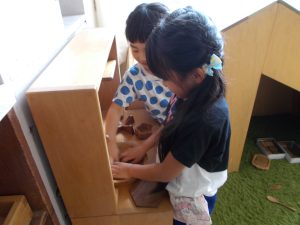 そして、みんなでお手伝いを頑張ったあとは、待ちに待ったお買い物体験です!大切なお金を渡して、ジェラートを受け取りました。一生懸命お手伝いをしたからこそお金を手にすることができ、買い物ができたという体験を通して、子どもたちなりにお金の大切さや、日々お仕事をしてくれている方への感謝の気持ち…等それぞれに感じたことがあったことと思います。楽しみにしていたジェラートのお味は…最高!だったようで、「めっちゃおいしい!」「頑張ったあとのご褒美やな!」「もっとおかわりしたい!」と、みんな笑顔でジェラートを食べていました。そしてジェラートをいただいた後は、店内を見学させていただいたり、店外の広場で遊んだりさせていただきました。「またお家の人と一緒に来る!」と、子どもたちにとっても記憶に残る楽しい一日となったようです。お店の方のご厚意とたくさんのご協力のおかげで素敵な体験をさせていただくことができました。今後も地域とのつながりやかかわりを大切にしていきたいと思います。