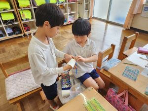 作った形から何が見えてくる・・・?と問いかけてから作りました。