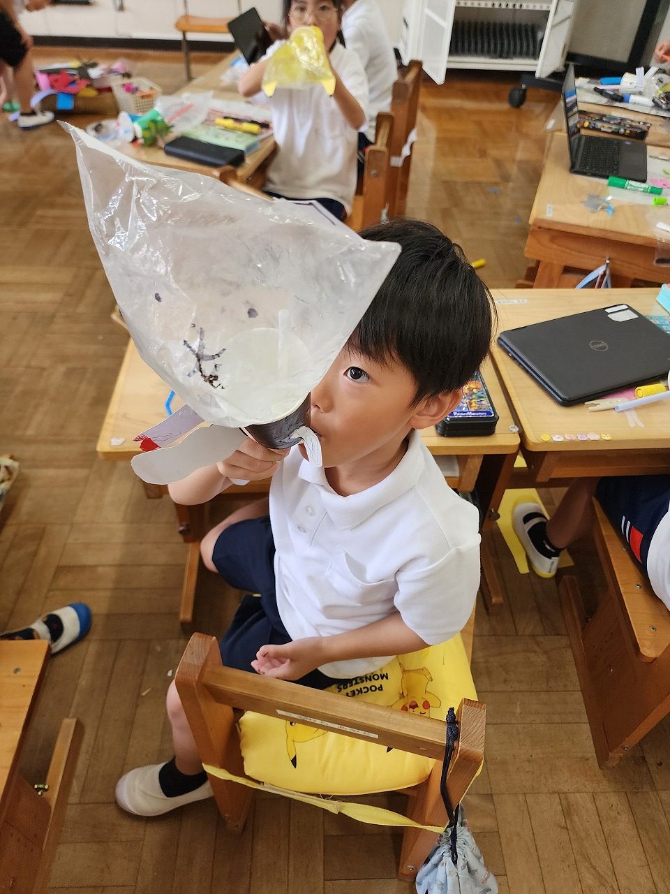 みんな作ったおもちゃを気に入ったようで、帰るまで膨らまして遊んでいました。
