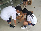 図工科の学習で「のこぎり」を使って木材を切ることに挑戦しました。