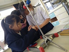 班に分かれて協力しながら実験していました。